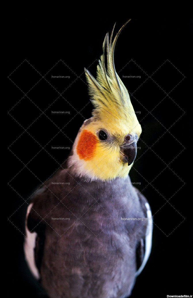 دانلود عکس با کیفیت طوطی عروس با پر های زیبا + این تصویر مورد استفاده برای: حیوانات و آکواریوم، پرنده سرا و حیوانات خانگی + با رنگ بندی: خاکستری و زرد و نارنجی و مشکی