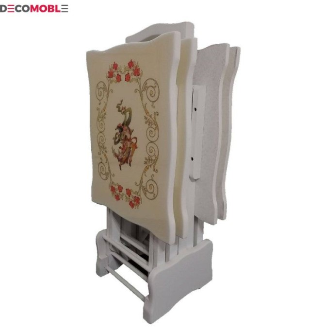 خرید عمده میز عسلی تاشو چمدانی _ تولید شده از جنس چوب در 2 رنگ سفید و قهوه ای طرح دار _ استعلام قیمت از فروشنده دست اول