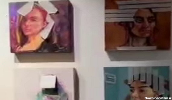 در یک نمایشگاه نقاشی در مشهد موی آثار هنری با چسب کاغذ پوشانده شد. منبع: تیتر مشهد